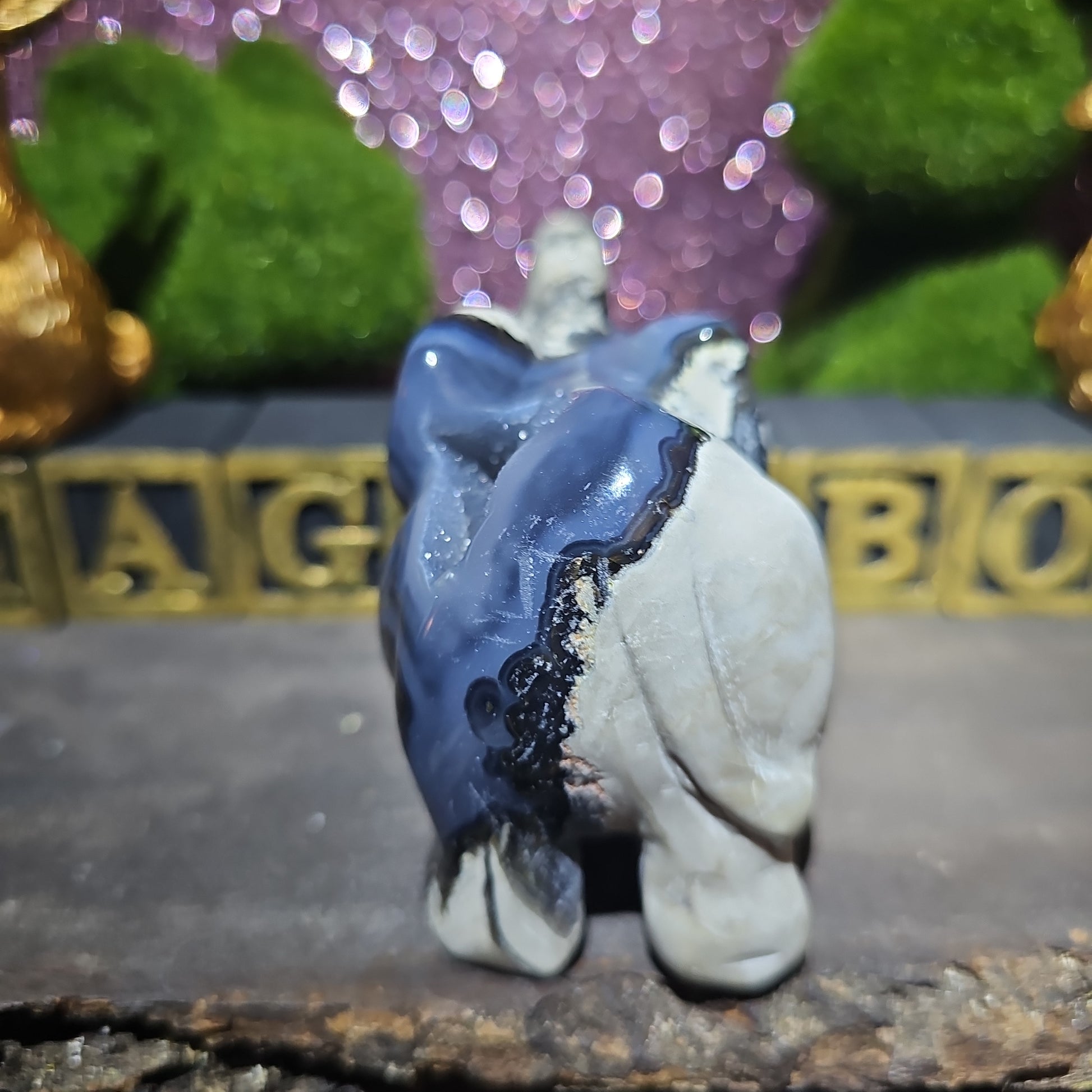 Our Volcanic Agate Elephant is a majestic fusion of geological splendor and artistic craftsmanship. Carved from genuine volcanic agate, this remarkable sculpture showcases the strength and grace of one of Earth's most magnificent creatures.