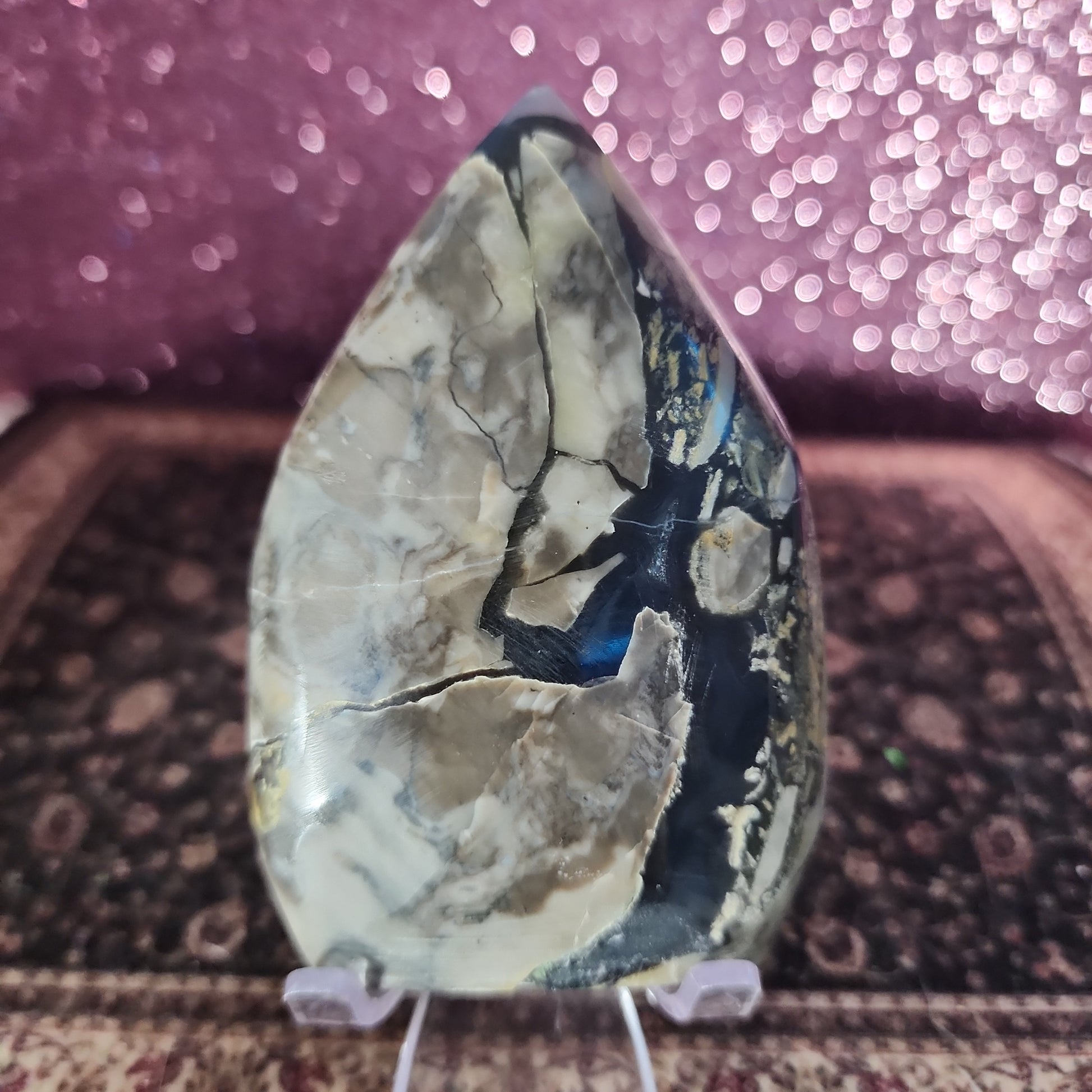 Volcanic agate is a unique variety of agate formed within the heart of volcanic eruptions. Its distinct patterns and mesmerizing color variations are a result of the interplay between molten lava and the surrounding minerals. As a result, each freeform is an exceptional work of art, carrying the energy of Earth's elemental forces within its very essence.