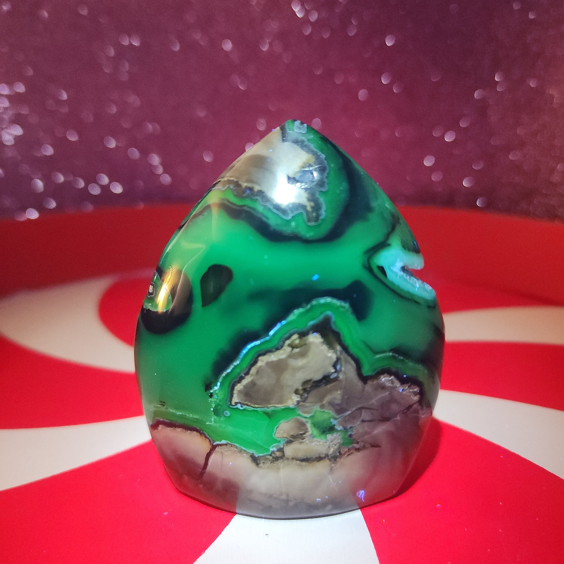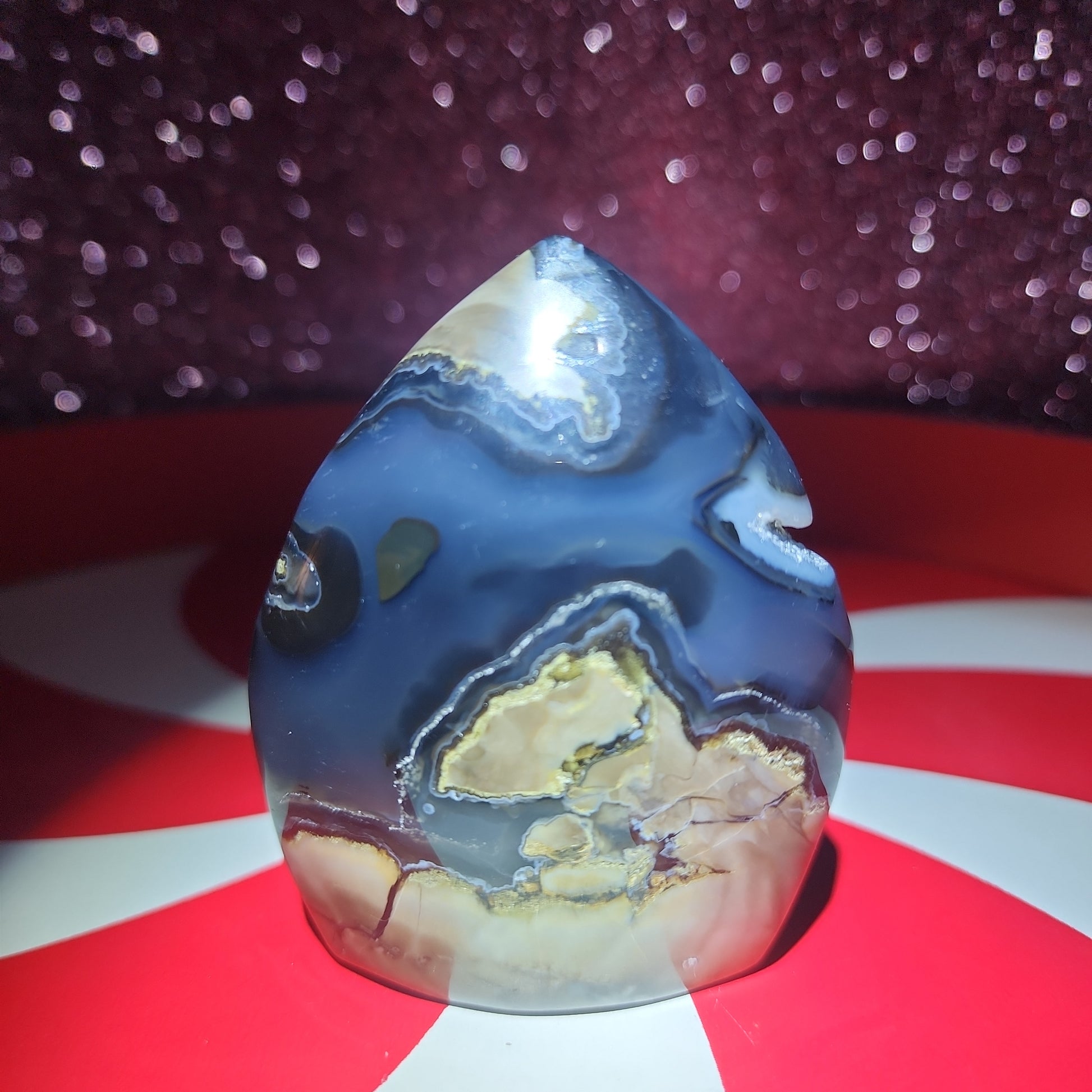 Volcanic agate is a unique variety of agate formed within the heart of volcanic eruptions. Its distinct patterns and mesmerizing color variations are a result of the interplay between molten lava and the surrounding minerals. As a result, each freeform is an exceptional work of art, carrying the energy of Earth's elemental forces within its very essence.