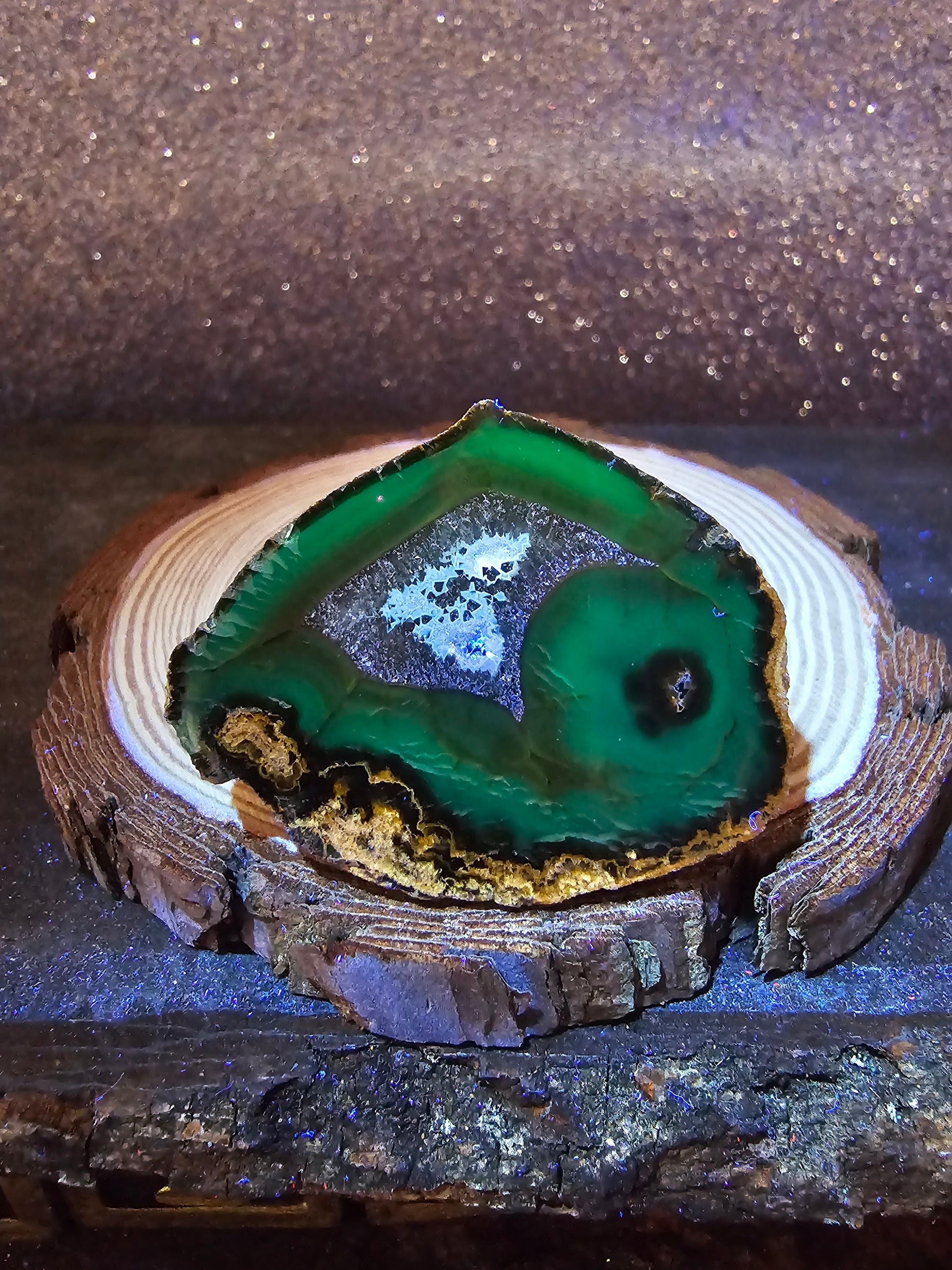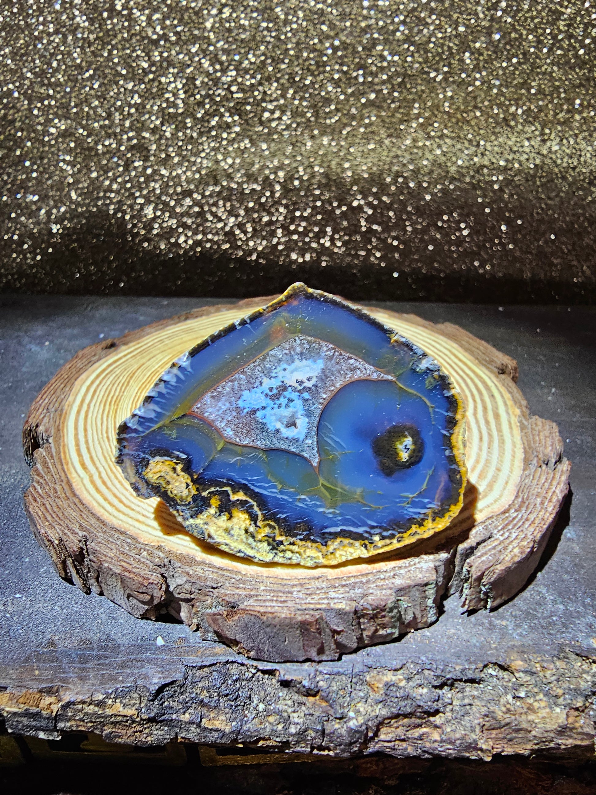 Unveil the captivating beauty of our Volcanic Agate Geode. Born from the fiery depths of the earth, this extraordinary crystal formation showcases the raw power and stunning beauty of volcanic agate.