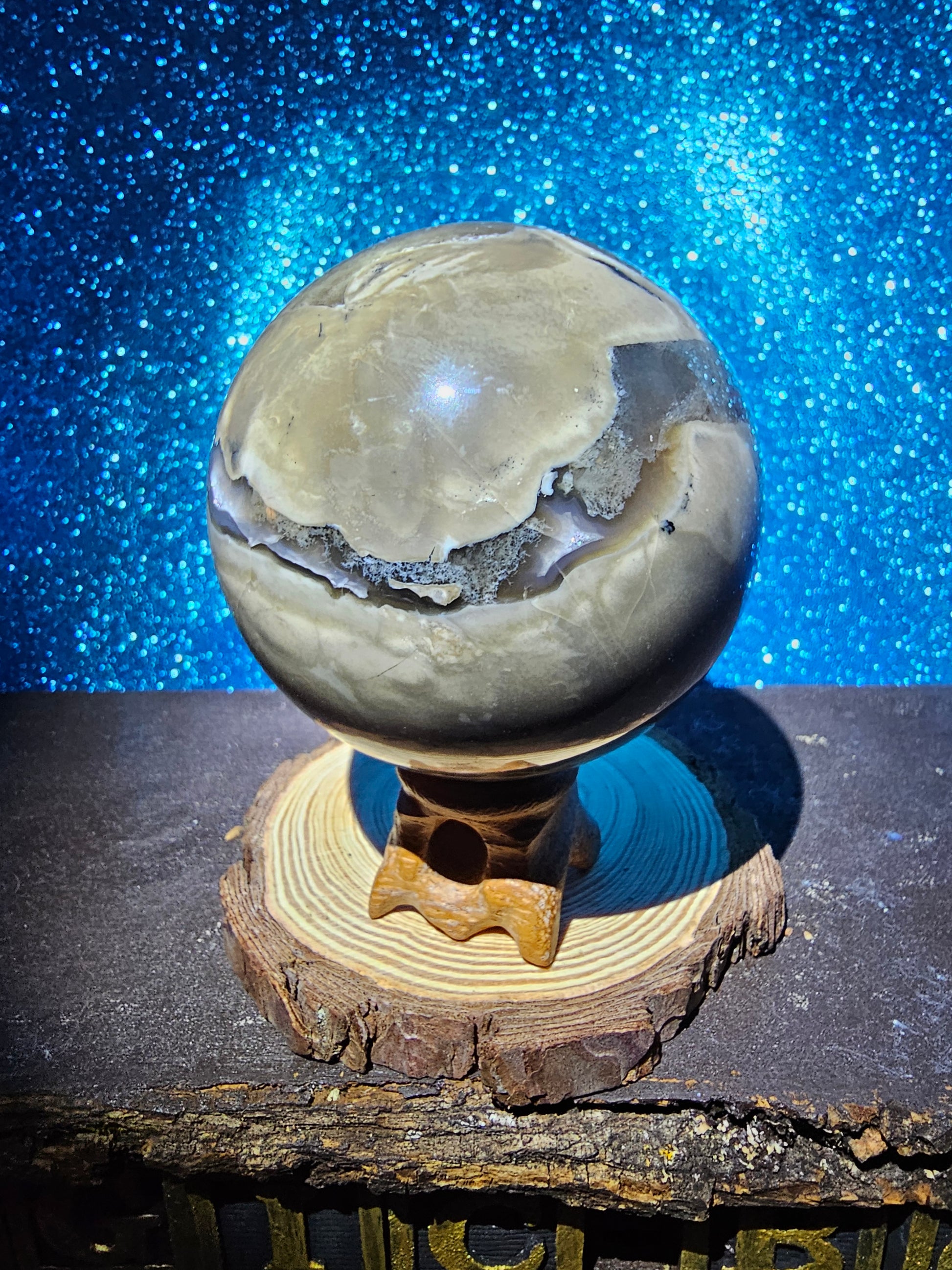Introducing the Volcanic Agate Sphere, a captivating and unique gemstone creation that combines the raw power of volcanic energy with the mesmerizing beauty of agate. Crafted with precision and care, this exquisite sphere is a testament to the natural wonders of the Earth.