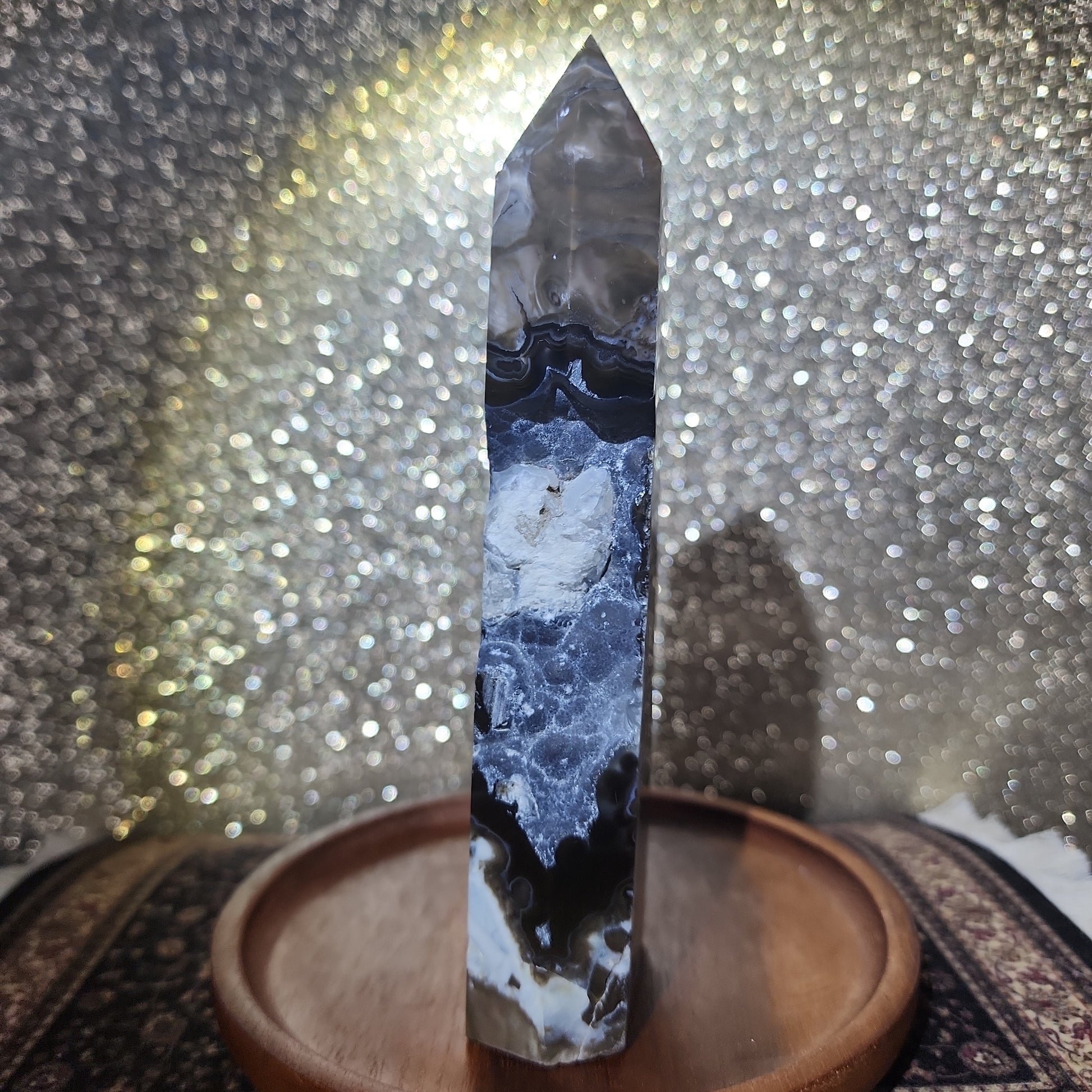 Introducing the Volcanic Agate Tower, an awe-inspiring gemstone creation that fuses the untamed energy of volcanic forces with the captivating beauty of agate. Meticulously crafted with precision and reverence, this exquisite tower stands tall as a testament to the extraordinary wonders of the natural world.