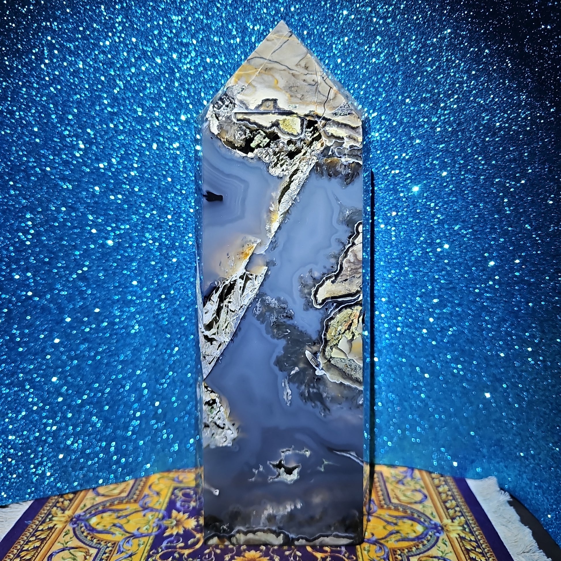 Introducing the Volcanic Agate Tower, an awe-inspiring gemstone creation that fuses the untamed energy of volcanic forces with the captivating beauty of agate. Meticulously crafted with precision and reverence, this exquisite tower stands tall as a testament to the extraordinary wonders of the natural world.