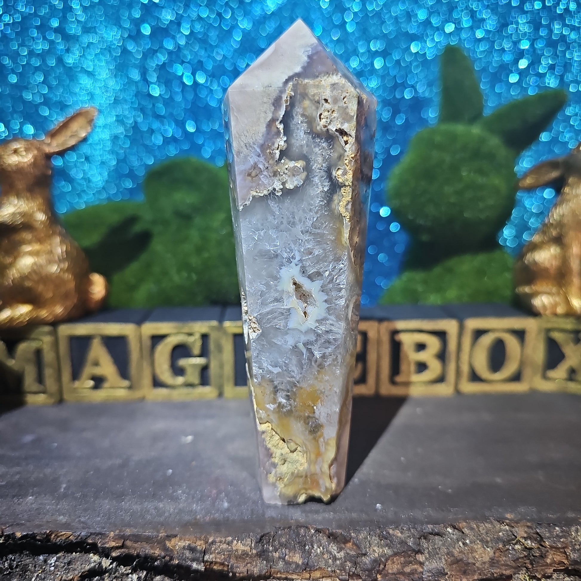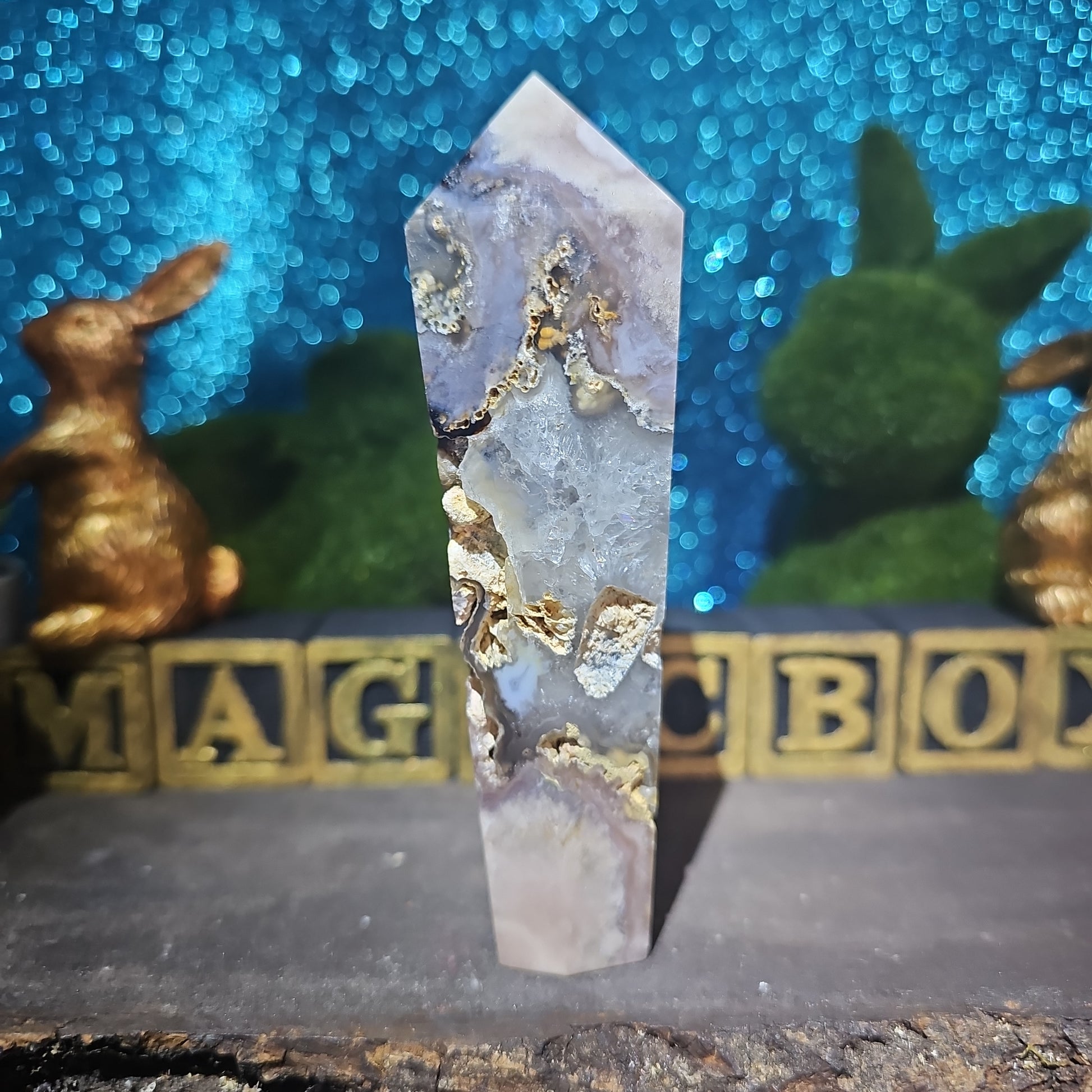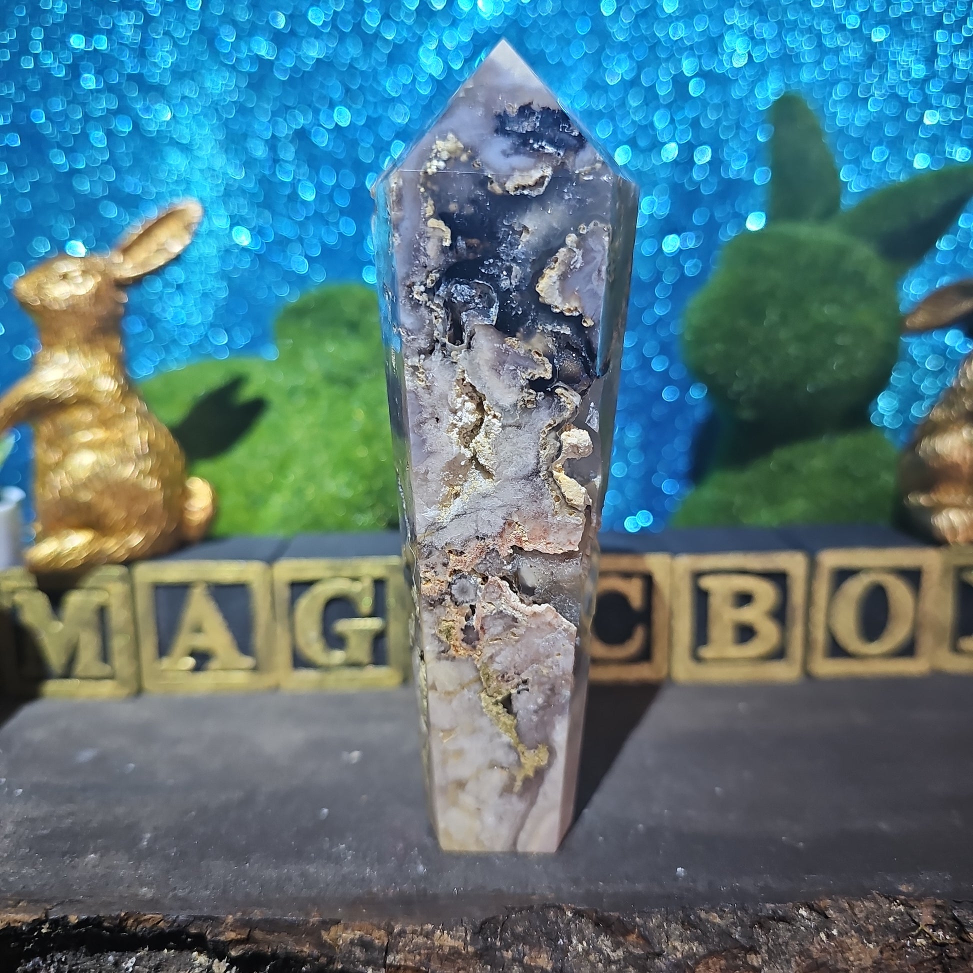 Unearth the captivating beauty of our Volcanic Flower Agate Wand Freeform. Handcrafted from the finest volcanic flower agate, this mesmerizing specimen showcases the intricate patterns and vibrant colors that make flower agate a beloved choice for crystal enthusiasts.