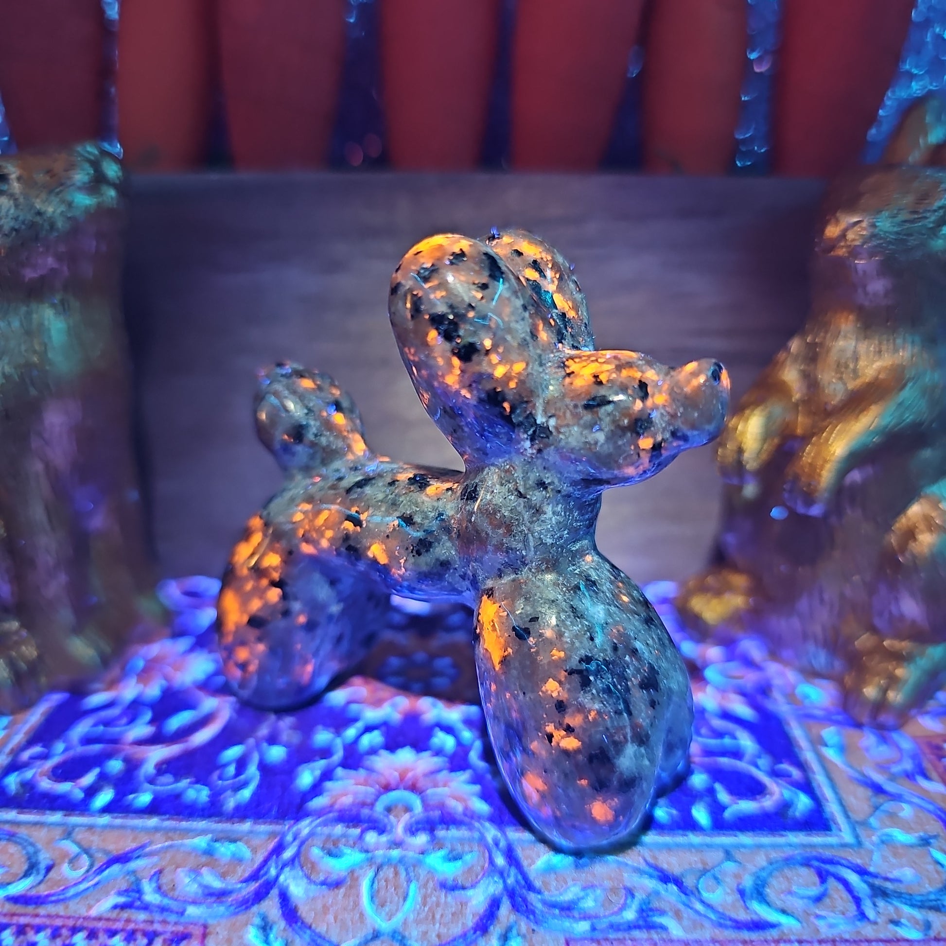 With its vibrant colors and charming design, our Balloon Dog radiates with the unique fluorescence of Yooperlite, inviting you to bask in its mystical glow. Whether displayed as a whimsical accent in your home or used as a conversation starter among friends, it's sure to bring smiles and spark conversations wherever it goes.