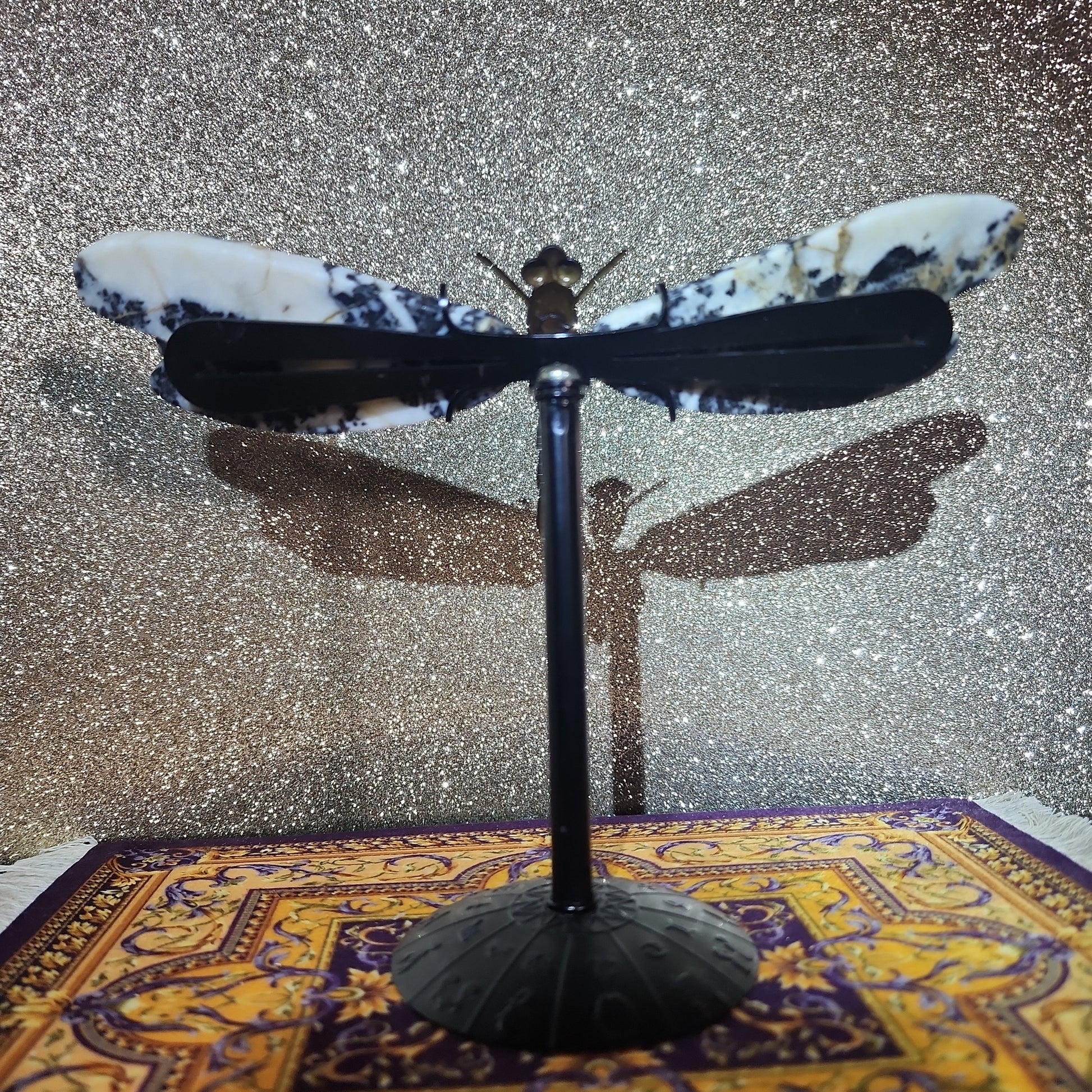 Zebra marble, characterized by its striking black and white patterns, adds a touch of bold elegance to the dragonfly wings. The unique veining and contrast of colors make each wing a piece of natural art, showcasing the beauty found within the Earth.